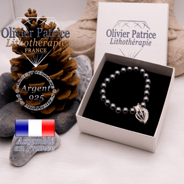 Ce bracelet est composé de pierres naturelles roulées nommées : hématite avec son apprêt en argent 925 en forme d'olive. Les perles naturelles mesurent 8 mm de diamètre et l'apprêt mesure 1,3 cm de large et 8 mm de haut. Vous pourrez choisir la taille personnalisée* de votre bracelet.