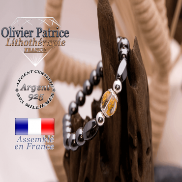 Ce bracelet est vendu dans son écrin. Il est composé de pierres naturelles d'hématite rondes et ovales facettées ainsi que 2 boules en argent 925 et une boule en cristal de roche entourée d'apprêts en argent 925. Le cristal de roche porte le symbole du mantra OM MANI PADME HUM. Vous pourrez choisir la taille personnalisée* de votre bracelet