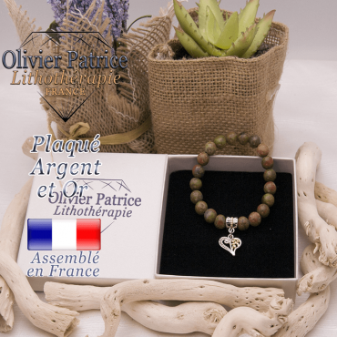 Bracelet unakite et son charms plaqué or-argent